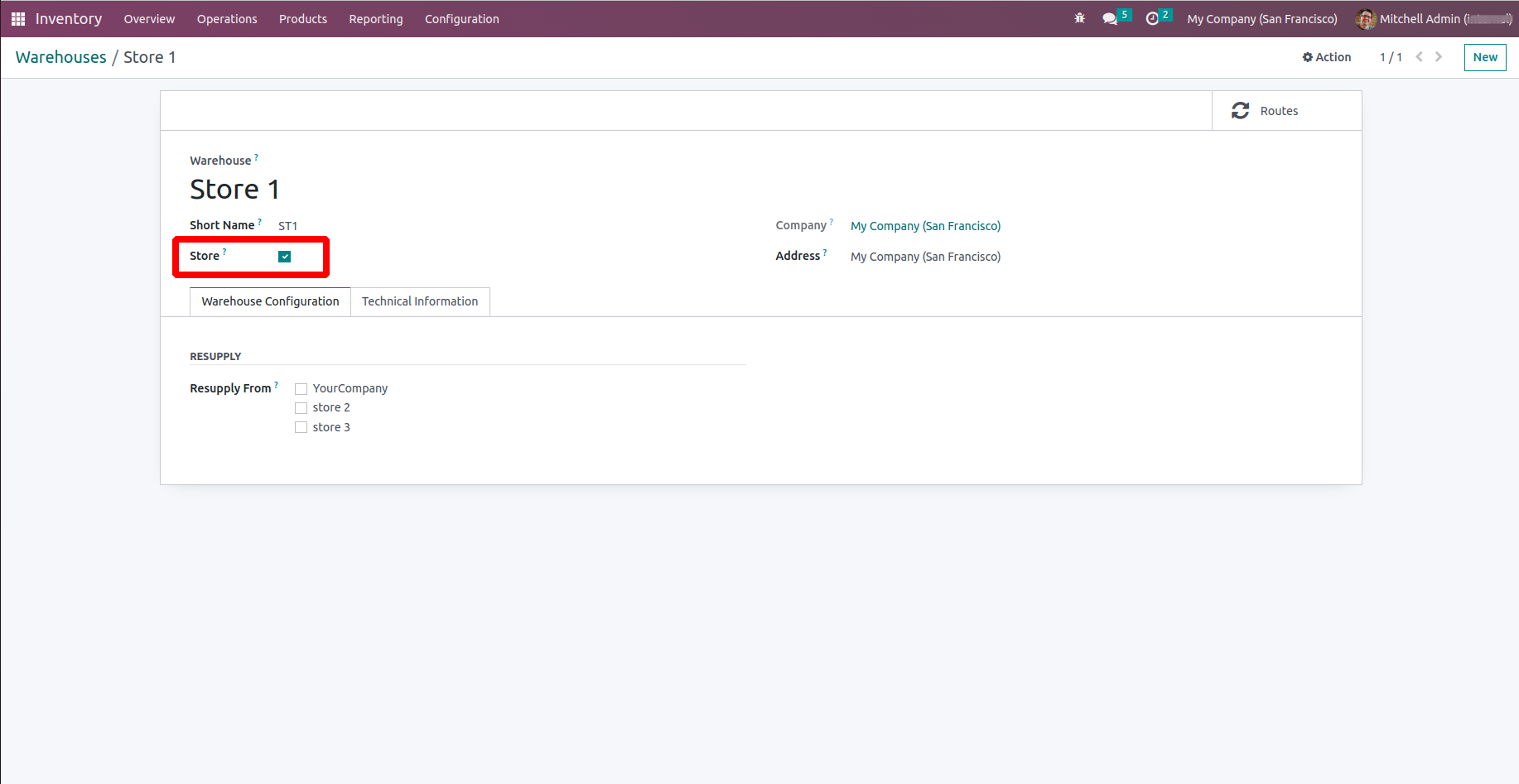 Choose the Warehouse in Inventory as Store by Enabling the Store Option.