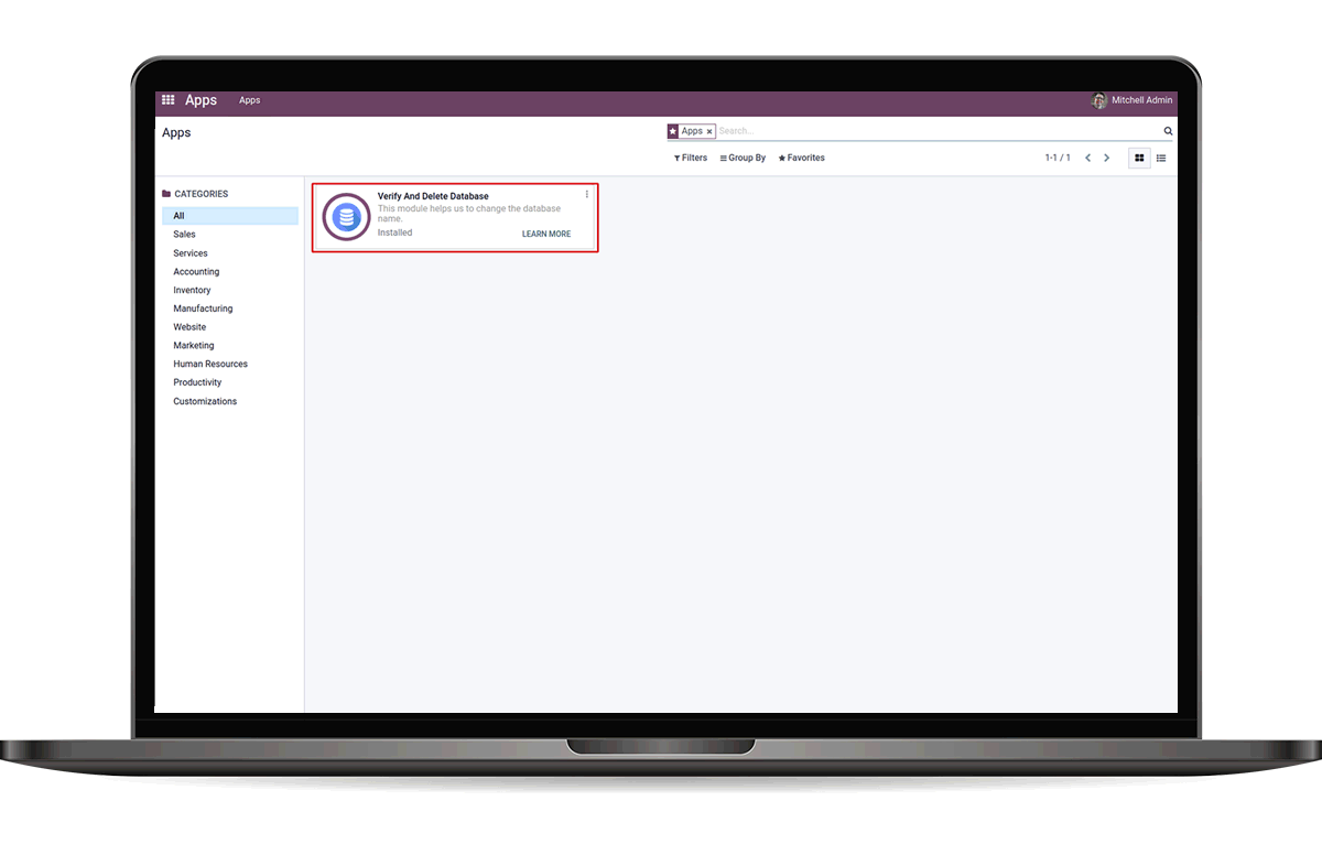 Install the module 'Verify And Delete Database' from the apps.