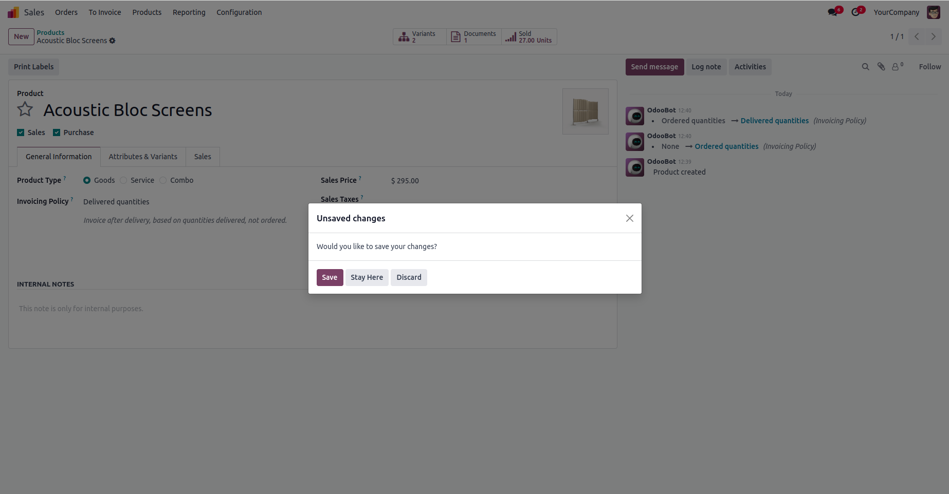 The user will see a popup when clicking the smart button, asking whether they want to save their changes that made in the form view.