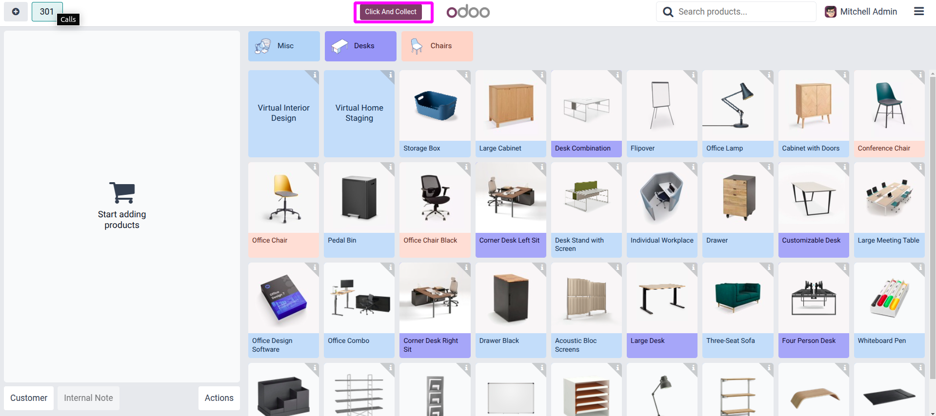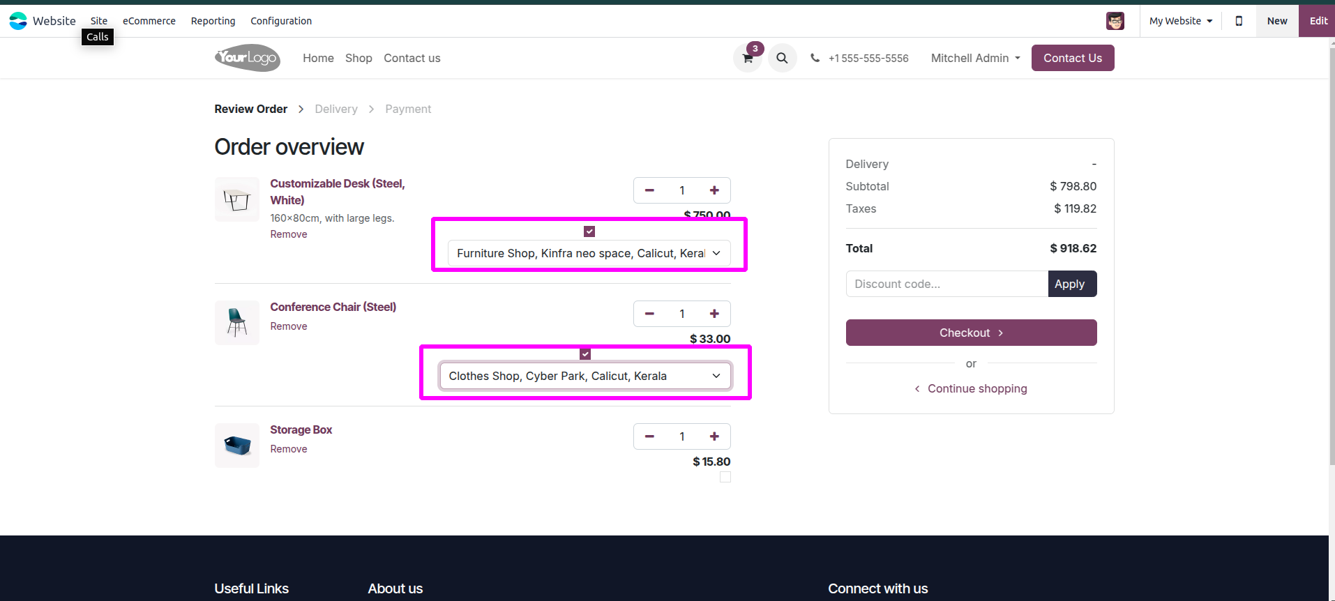In the order overview section of the checkout process, there is a checkbox labeled "Click and Collect" below the total amount. When you click this checkbox, a list of available store locations will appear, allowing you to select the nearest one.