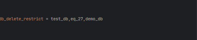 Add the 'db_delete_restrict' parameter for the database which need to restrict the deletion in the conf file.