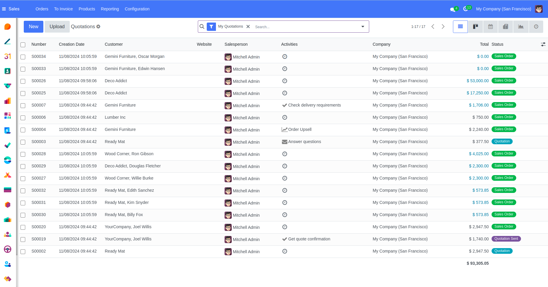 The List View in the "Dodger Blue" theme for Odoo 18 features a clean, structured layout with a blue and white color scheme that enhances readability. Each row displays essential information clearly, with color-coded indicators for easy status recognition. The layout is fully responsive, designed to improve navigation and data management, allowing users to view, filter, and sort records efficiently. .