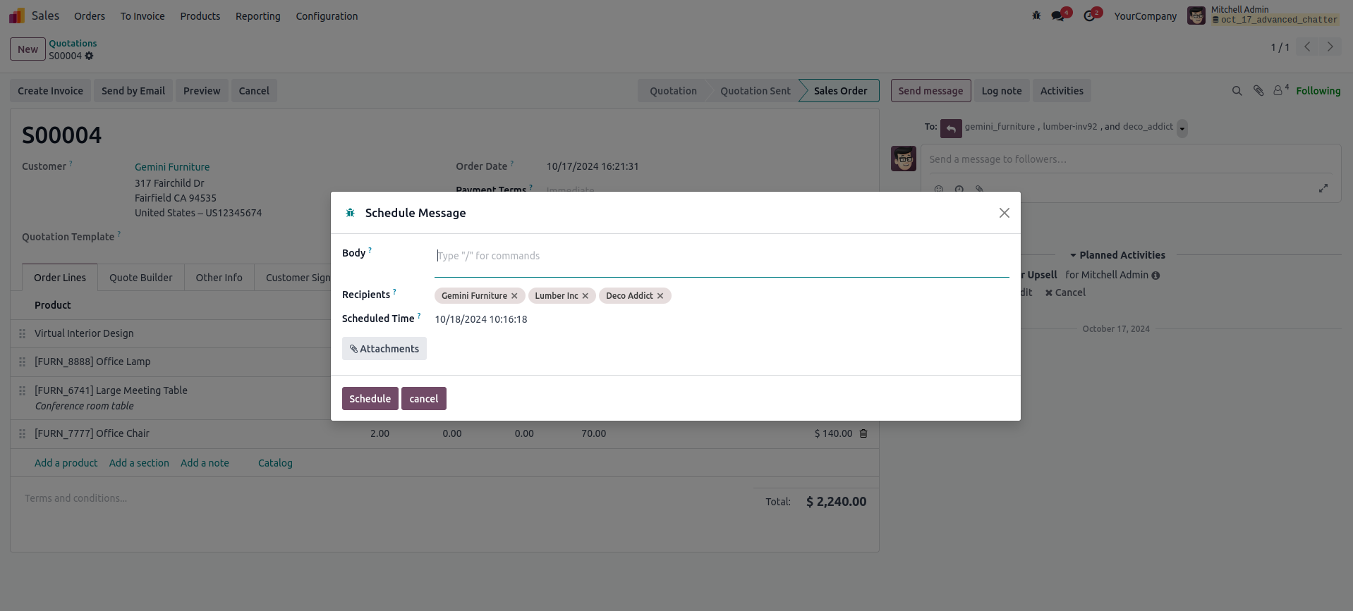 This module simplifies log scheduling, enables easy message sending, and streamlines recipient selection from the followers list.
