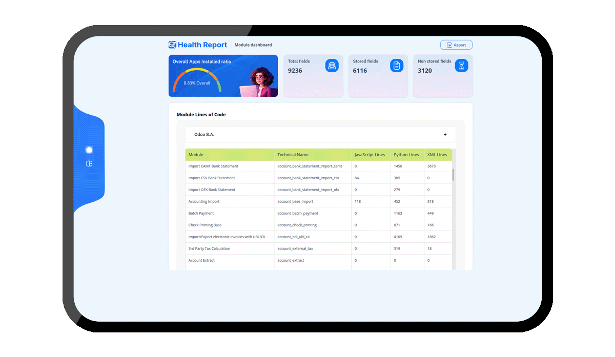 This app provides a comprehensive quality check of Odoo modules by analyzing code line by line.