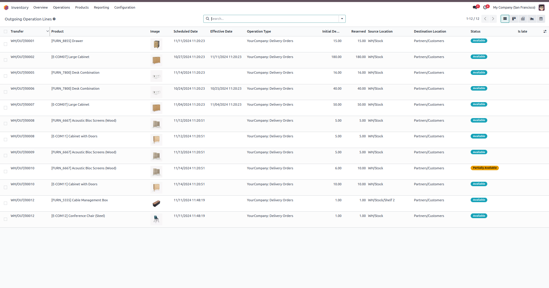 Transfer Order Form are attached with images of their related products in the tree view of stock move lines.