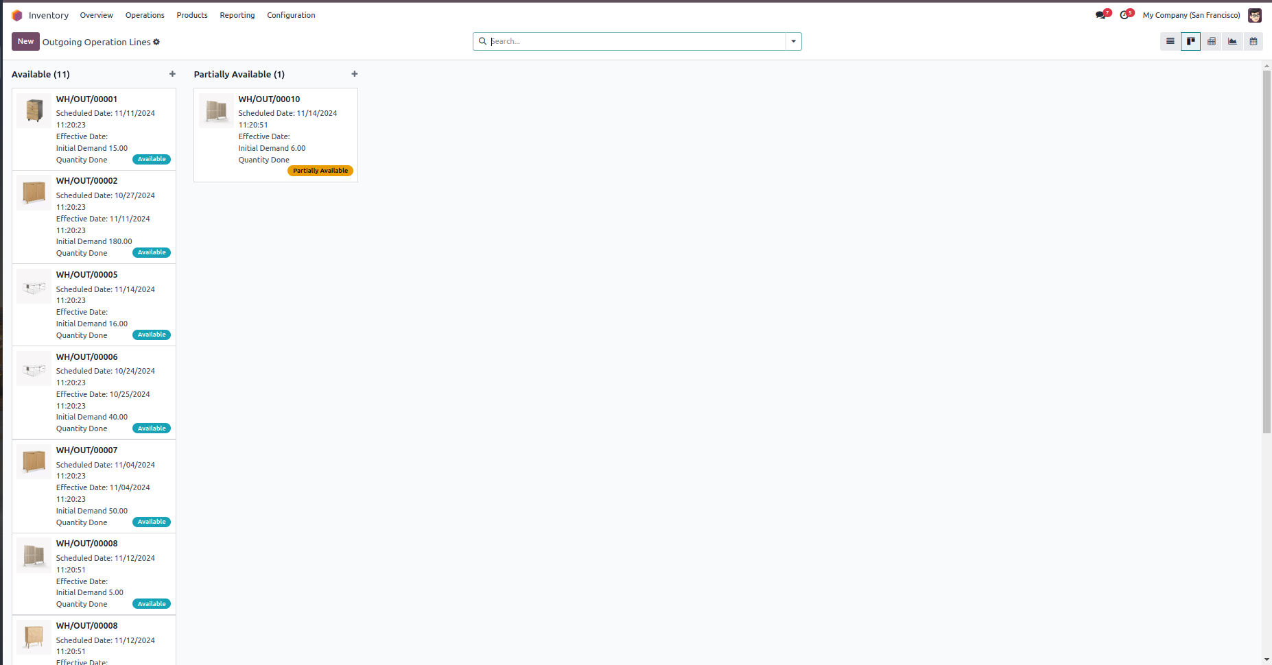 Outgoing Picking Operations Views with images of their related products Record