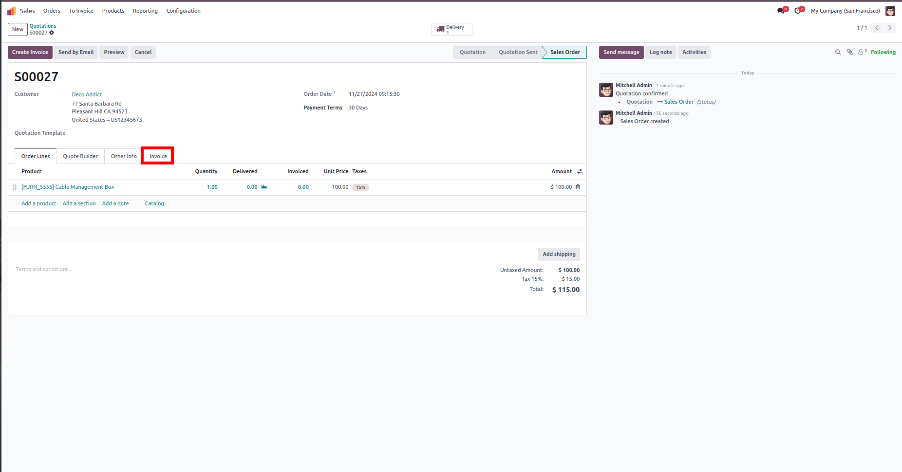 Click on the "Add Invoice" Button to link Invoices to the Sale Order.