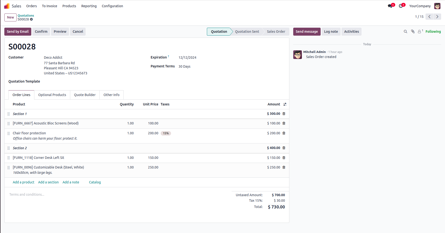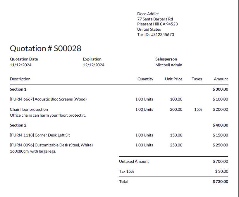Section wise subtotal in sale order.