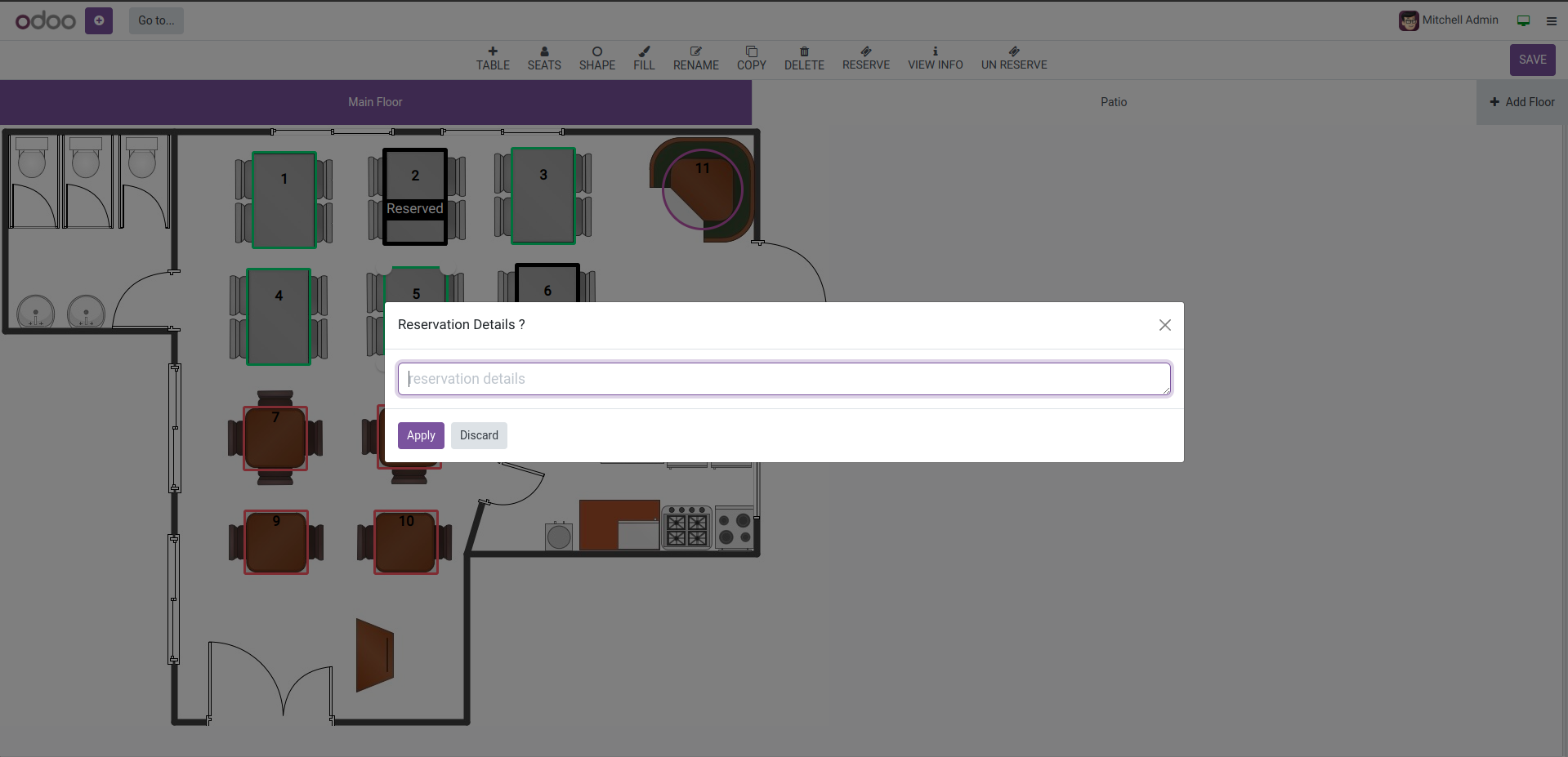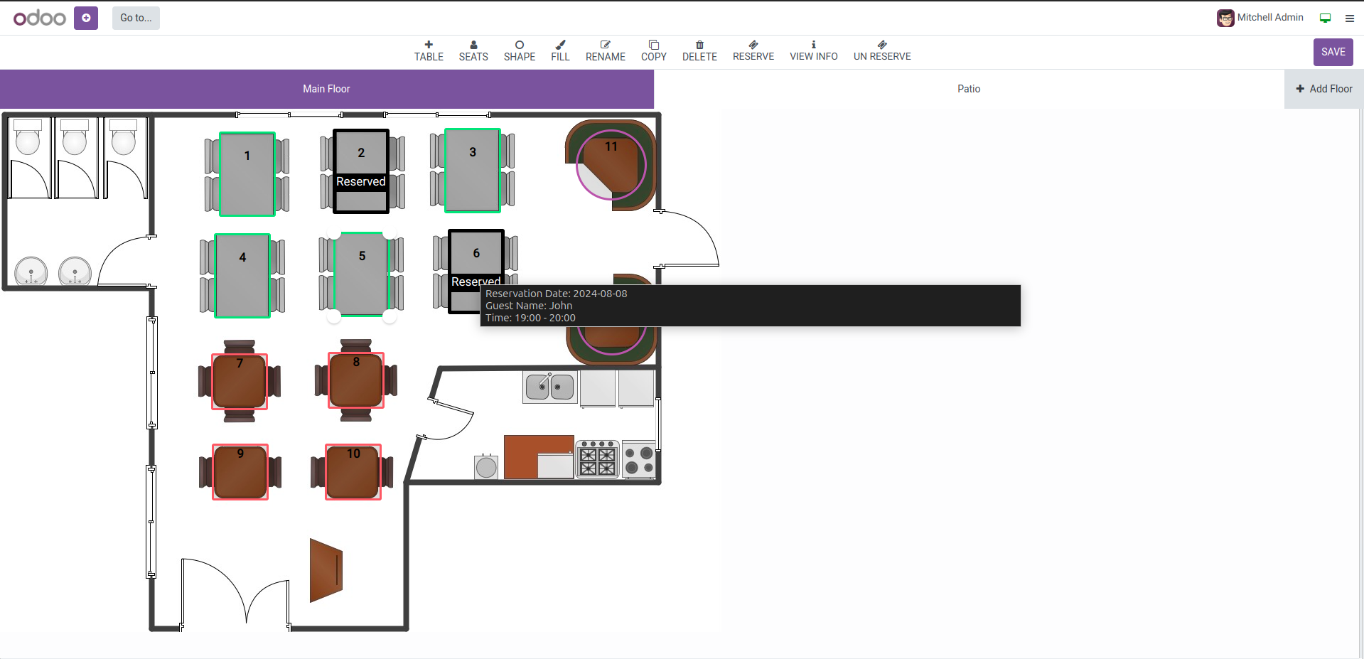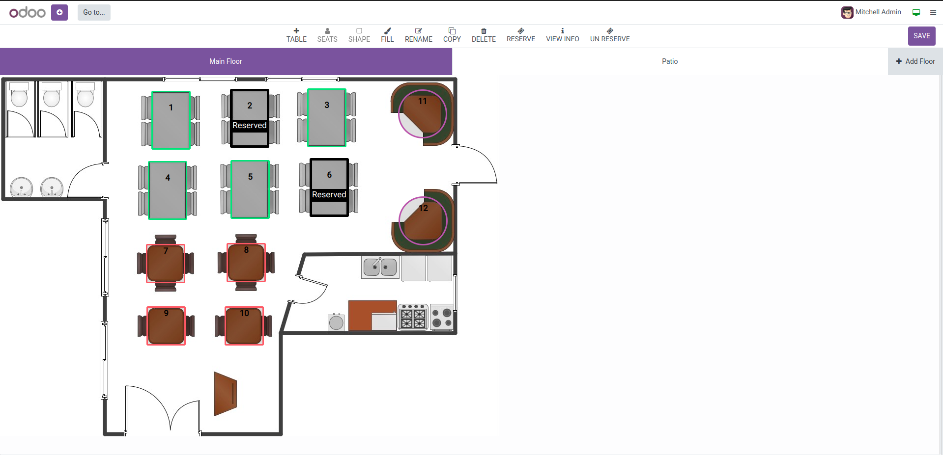The "Reserve" and "Unreserved" menus facilitate the reservation of POS tables.