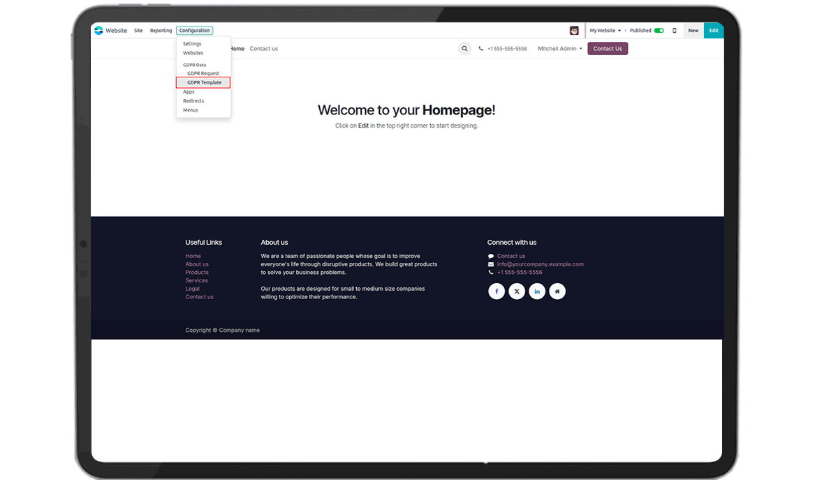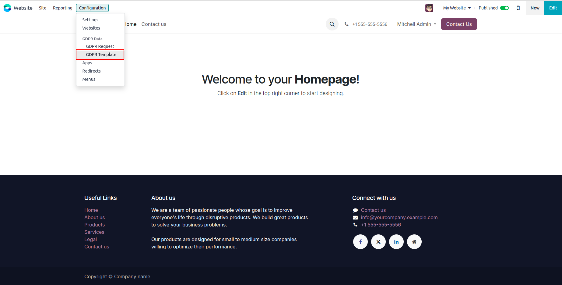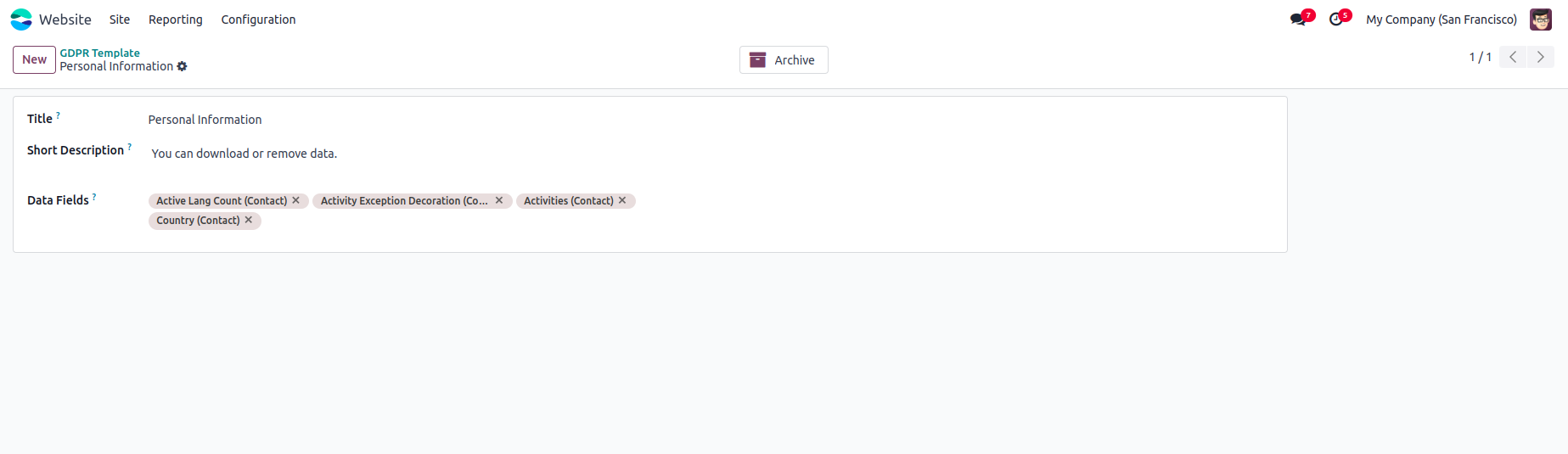 Clicking the Download Button Creates a Request in the Backend. Go to Website > Configuration > GDPR Request