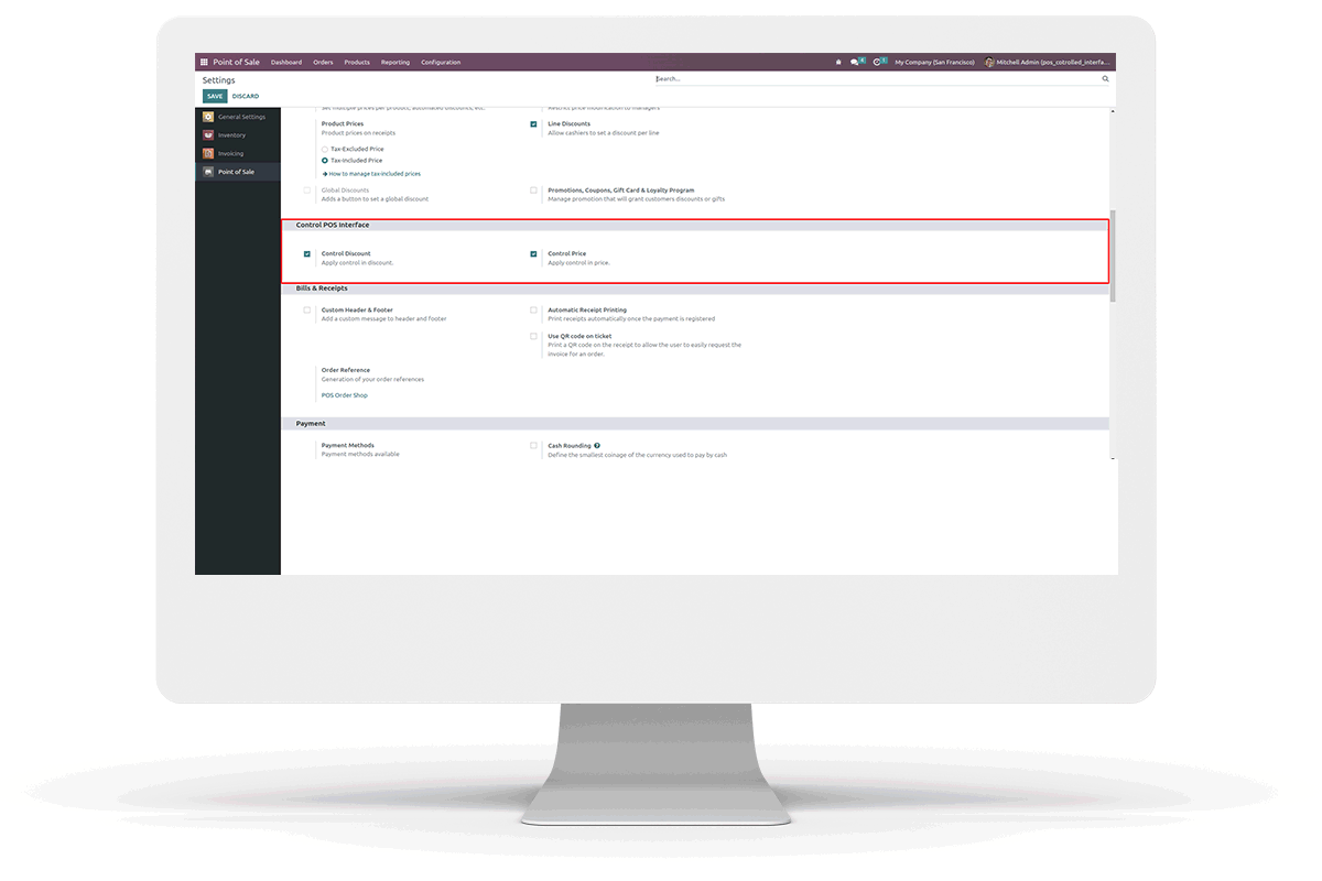Here we can enable the Control Discount and Control Price buttons to control discount and price.