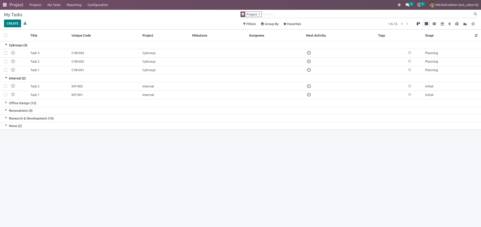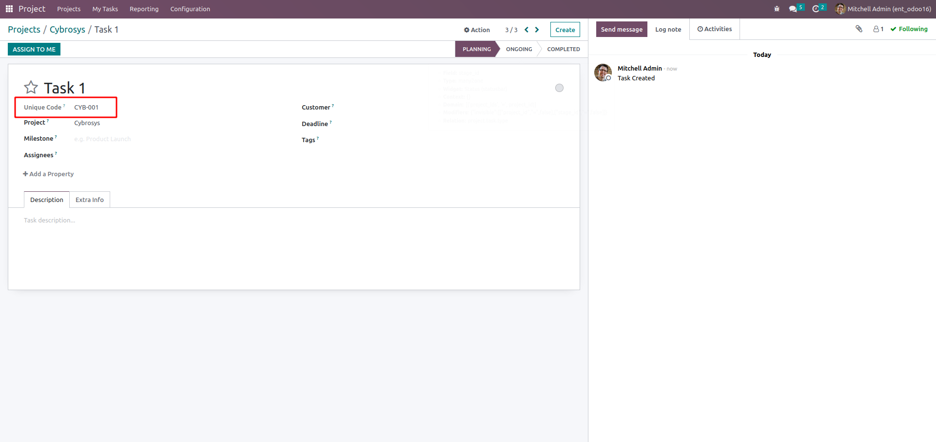 This module helps you to track each tasks with the unique code which is generated automatically. For projects, a code can be set which will be used to generate the unique serial code for that project's tasks. Hence, this makes the tracking of the tasks by project easy and convenient for the users.