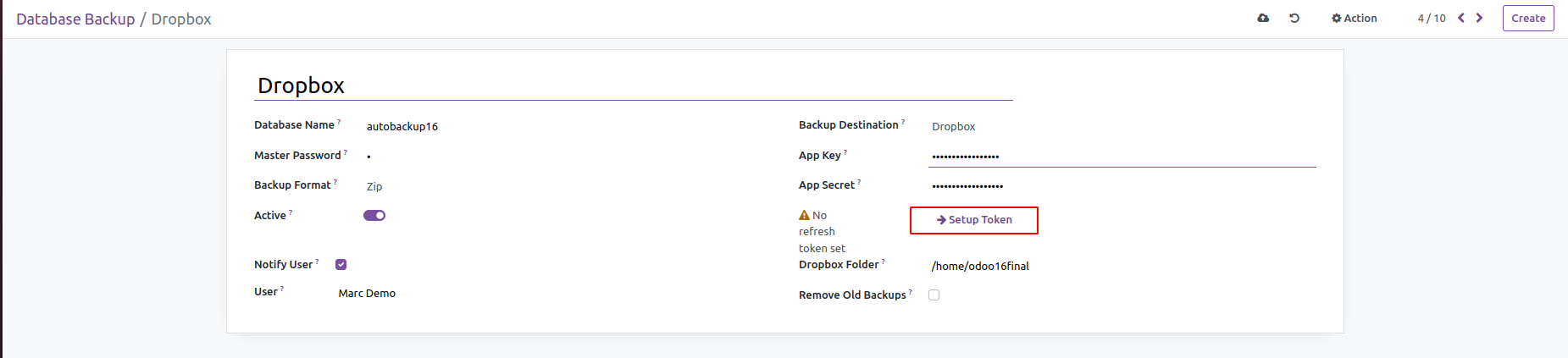 Got Setting --> Technical --> Backup Configuration to configure backups