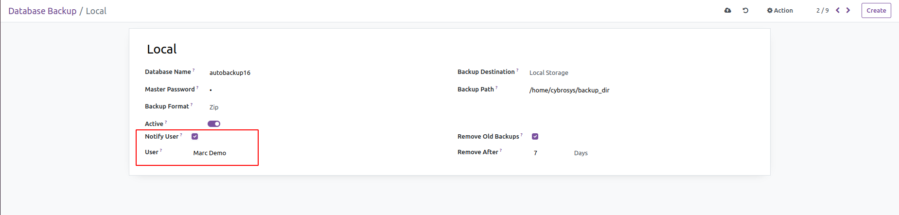 Enable notify user option, and select a user to notify. An email notification will be sent to the selected user on backup successful and failure.