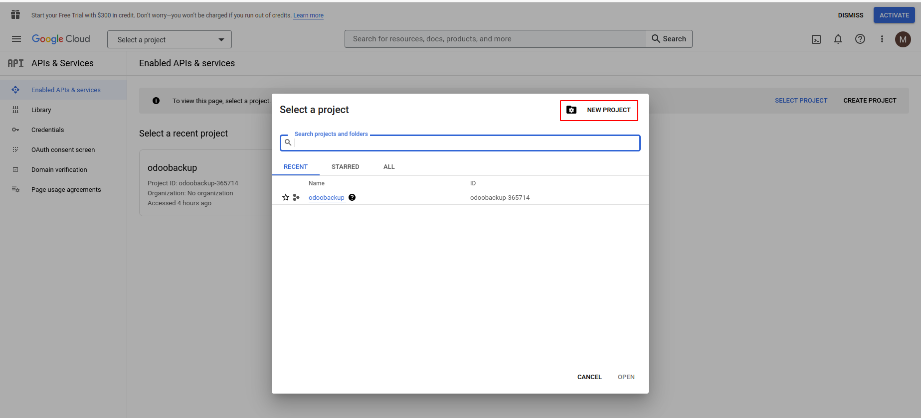 you'll need to create a new Google API project and enabling the Google Drive API, Go to the Google API Console and log into your account. While creating the project, for the Redirect URI restrictions, copy your Odoo database URI followed by /google_drive/authentication. Example: