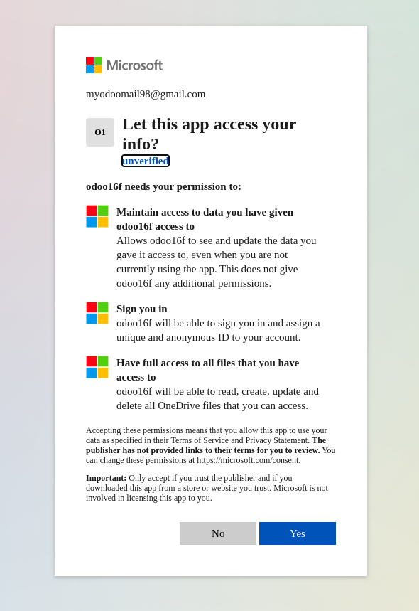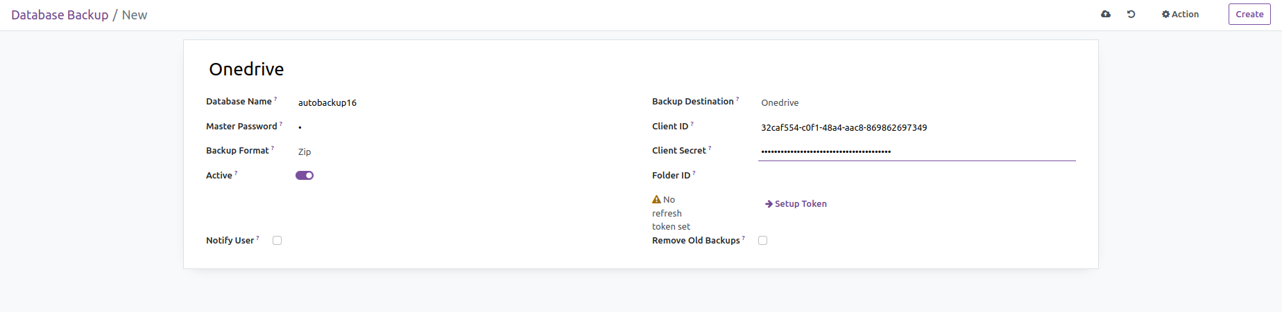 Select backup destination as onedrive. Enter the App key and App secret. you'll need to register a new app in the Microsoft Azure portal. While registering the app for the Redirect URI restrictions, copy your Odoo database URI followed by /onedrive/authentication. Example: