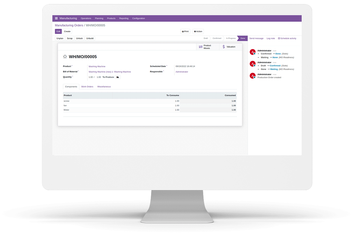 Manufacturing Order with Bill Of Materials.