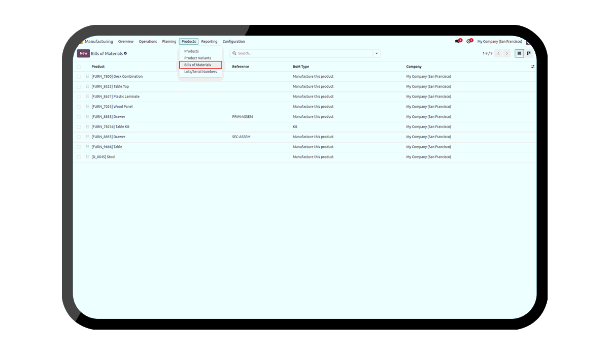 Choose a Bill of Material.