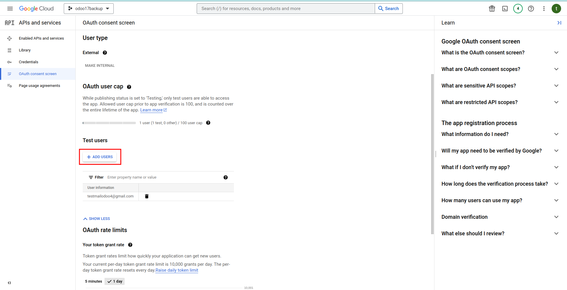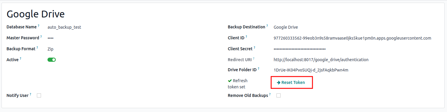 Configure Backup, Copy Client ID and Client Secret from Google Drive API Credentials page into their respective fields.