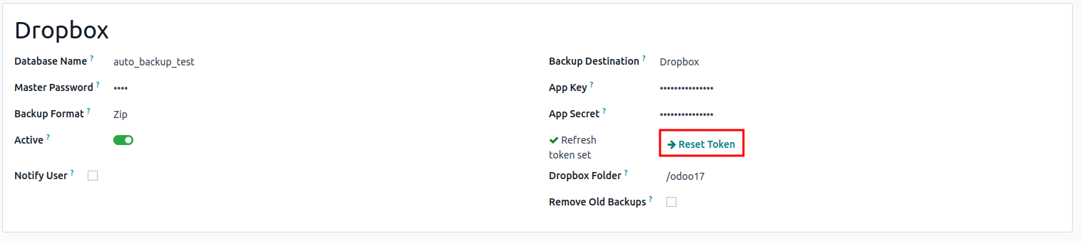 Reset the token if required by clicking on the "Reset Token"
