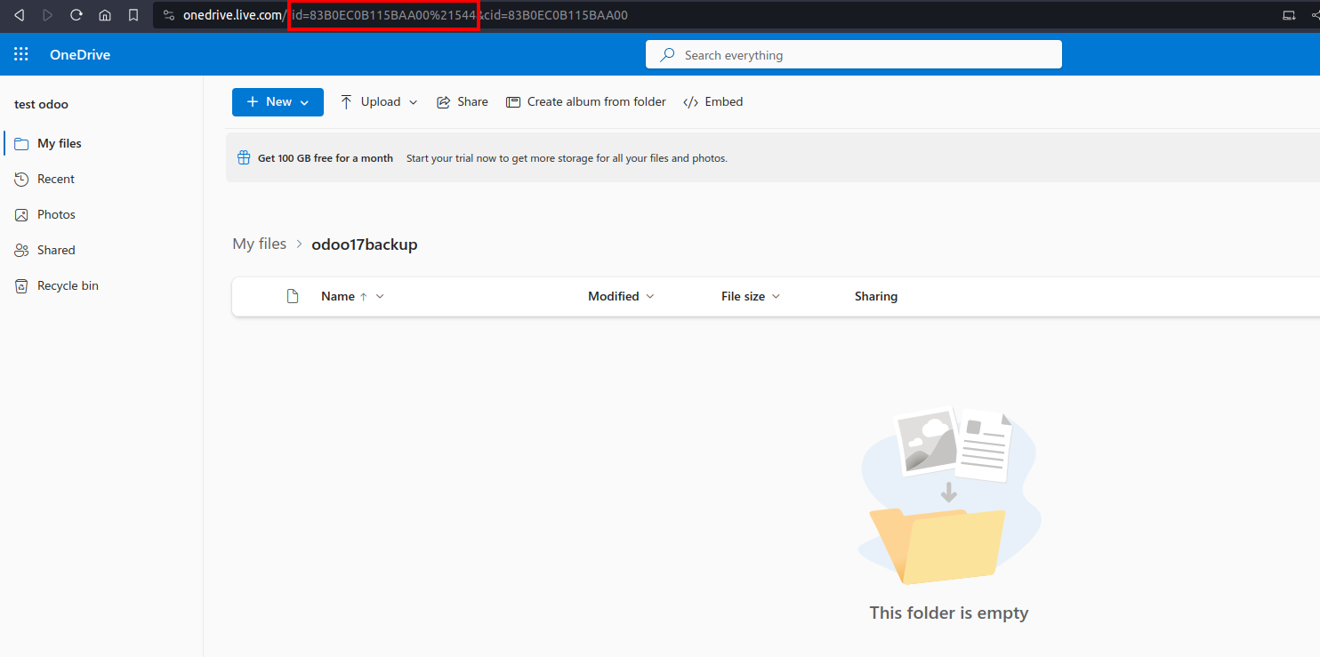 Get OneDrive folder ID, where need to store the backup files.