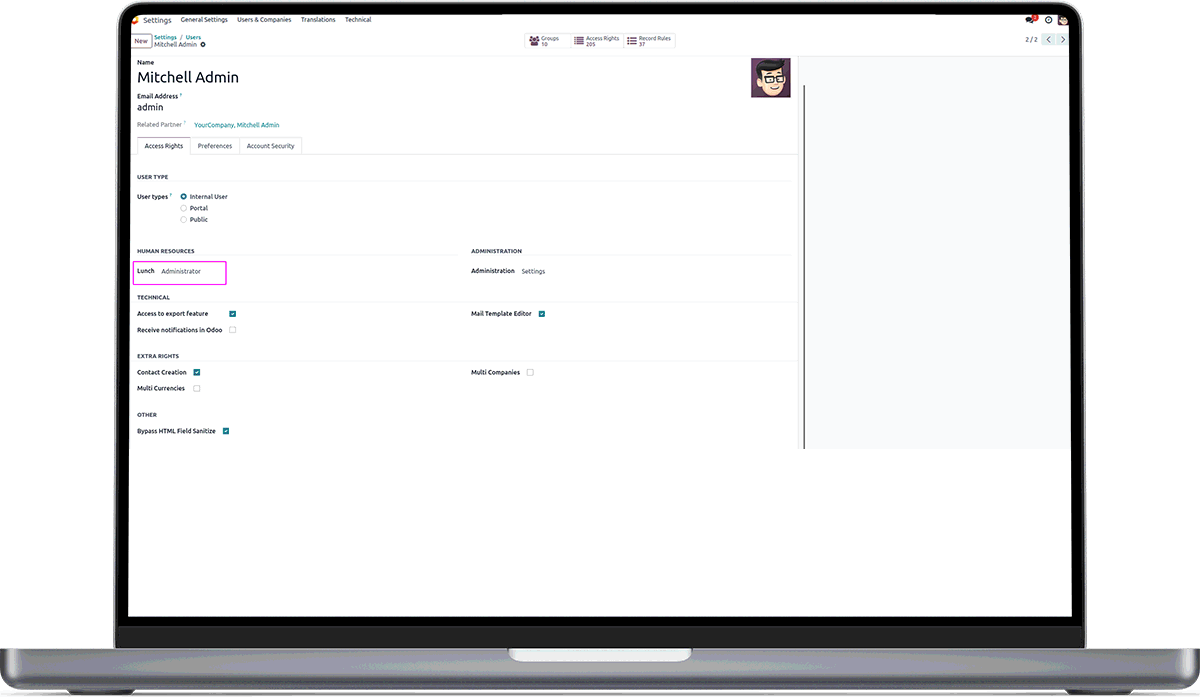 The user should be added to the security group: Administrator(Human Resources/ Lunch) inorder to get access to the new Report menus.