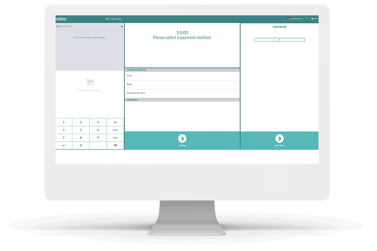When a product is clicked, it is added to the order lines and the total is displayed beneath it. We can adjust the amount, price, and discount using the number pad.